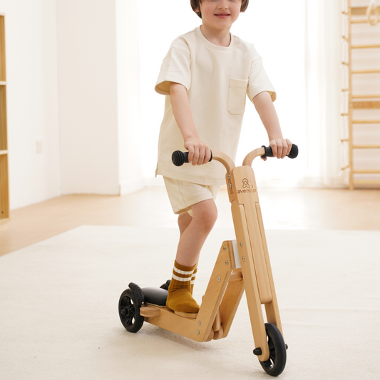 Juneberry 2-in-1 Wooden Scooter & Ride-On Toy for Toddlers