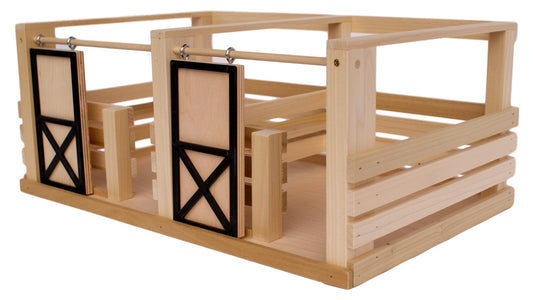 AmishToyBox.com Wooden 2-Stall Horse Stable Toy with Sliding Doors