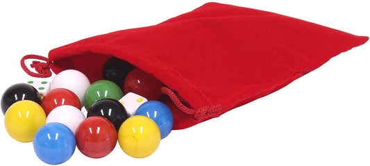 Bag of 24 Glass Marbles (16mm) and 6 Dice for Aggravation Game