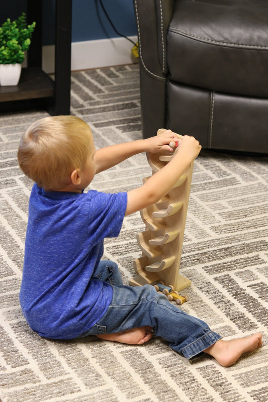 Pyramid Marble Tower Run Wooden Toy, 39" High, Marbles Included