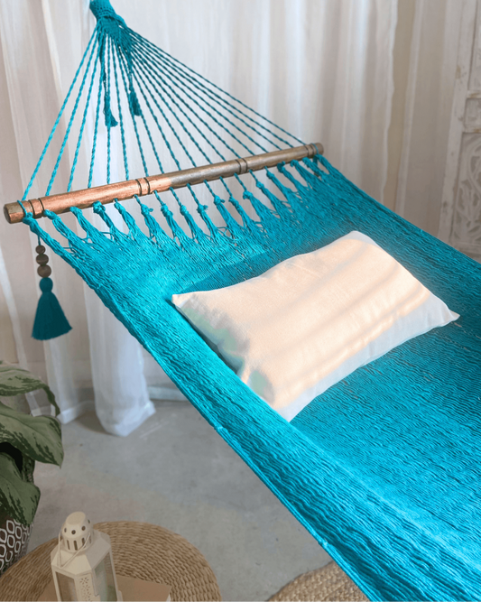 Woven Turquoise Hammock With Wood Spreaders | JULIANNA