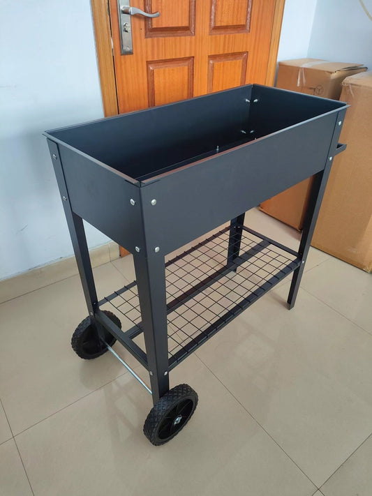 Black Metal Raised Garden Bed Cart with Wheels for Easy Moving - Good for Vegetables, Flowers, and Herbs