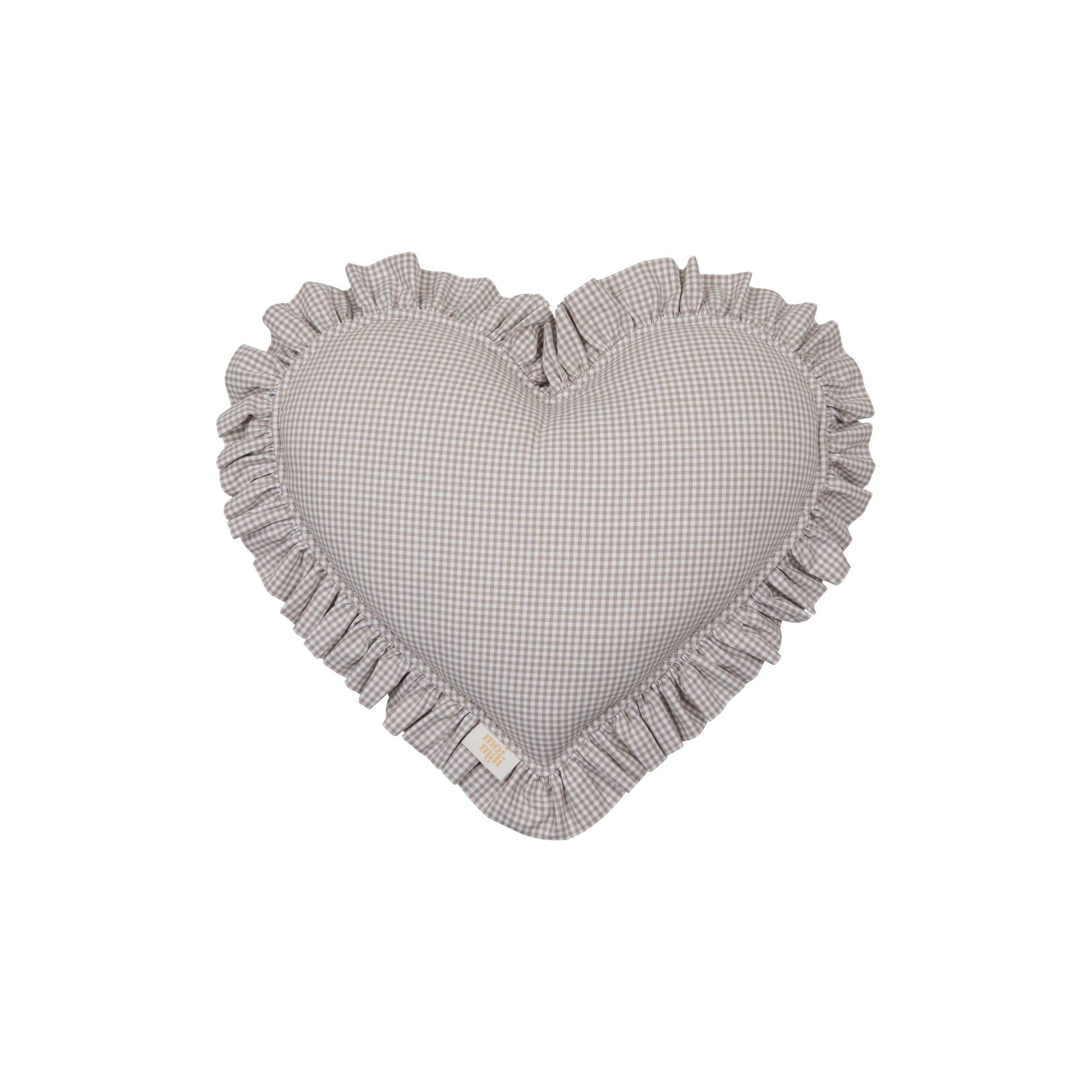 This fluffy double-sided cushion is sewn firmly from high-quality beige velvet and checkered cotton.