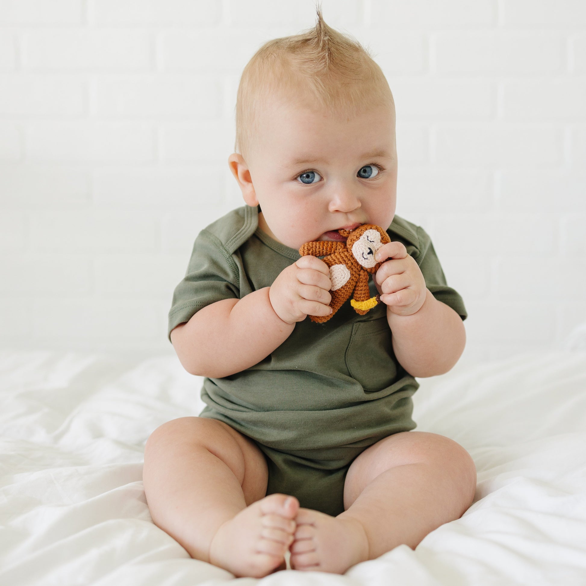 Made from 100% GOTS-certified organic cotton, the bodysuit from Our Little Treasures feels like butter, perfect for all the cuddles. Add any handmade Pocket Pal for a charmingly cute outfit. When your little one outgrows it, simply return it to us and enjoy a 40% discount on the next size up.