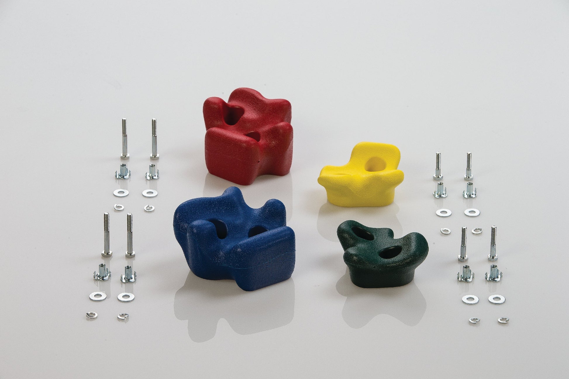 Plastic Climbing Rocks from Creative Cedar Designs: don’t settle for subpar swing set accessories! Ensure your child’s safety & the longevity of your outdoor play structure with this set of (4) climbing holds & easy-to-install mounting hardware. Begin your residential rock climbing adventure on your own outdoor playset, jungle gym or wooden swing set with this multi-color set of plastic climbing wall holds!