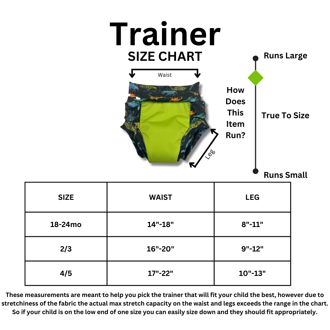 The Daytime Trainer feature 2 layers of organic cotton and hemp fleece in the wet zone and a layer of TPU, the perfect combination for children that are nearly self-sufficient in using the toilet but may still have the occasional accident. The stretchy waist and legs allow your child to easily pull the trainer up & down on their own, giving them confidence and independence in this new stage of their life. The natural fiber interior allows your child to instantly feel when they have had an accident which will help them better understand when they need to use the toilet.