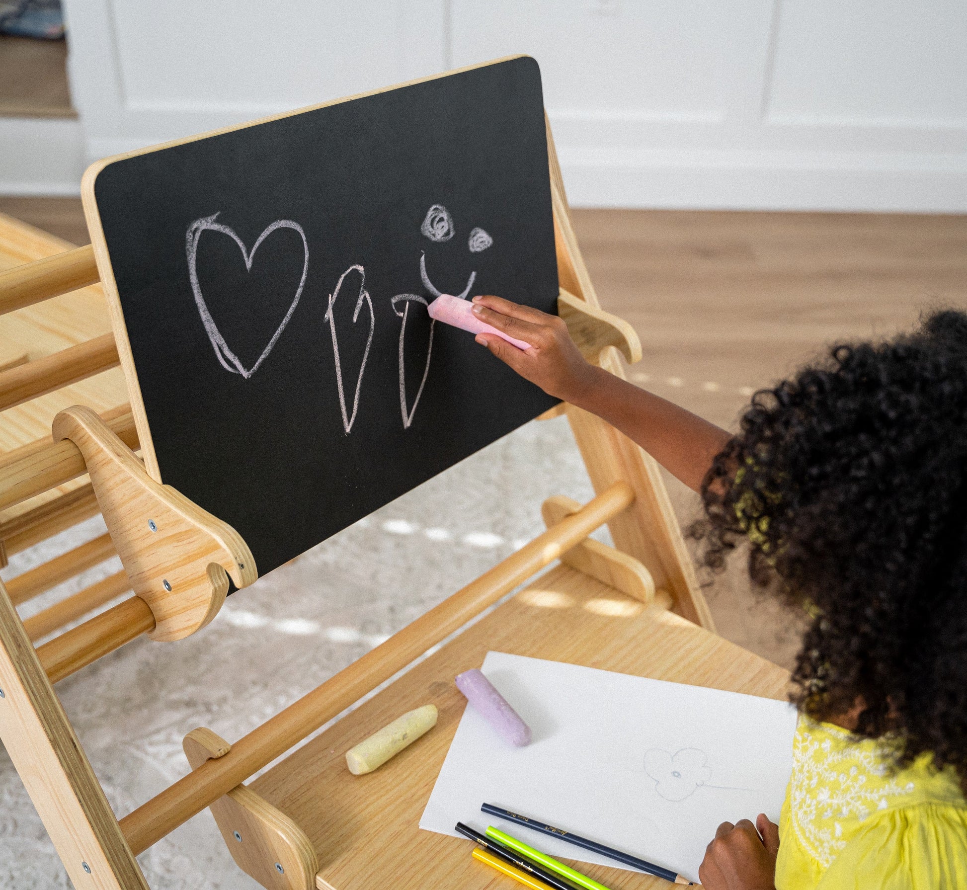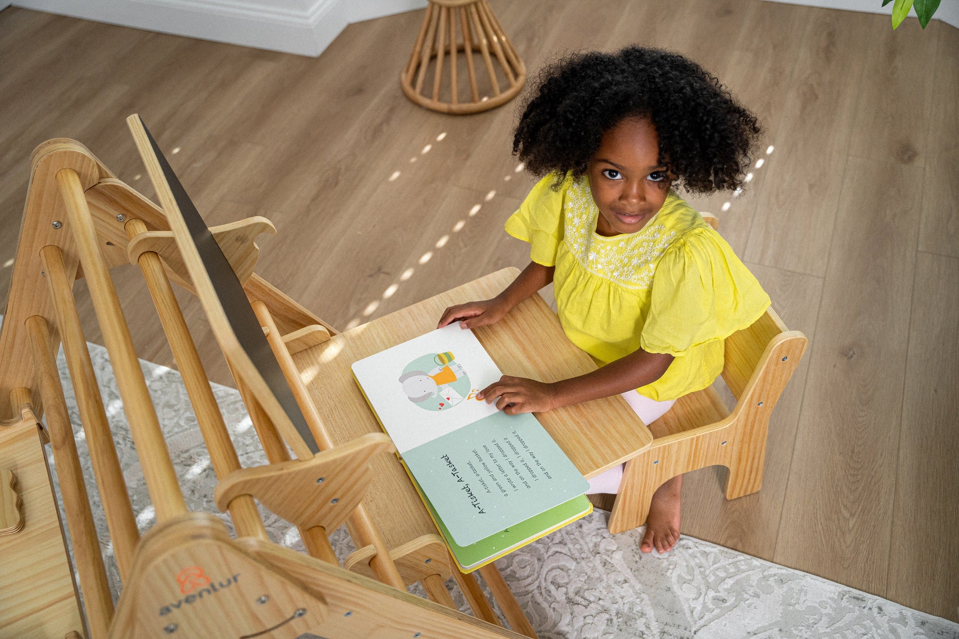 Attach this desk and chair to any Avenlur Pikler climber.