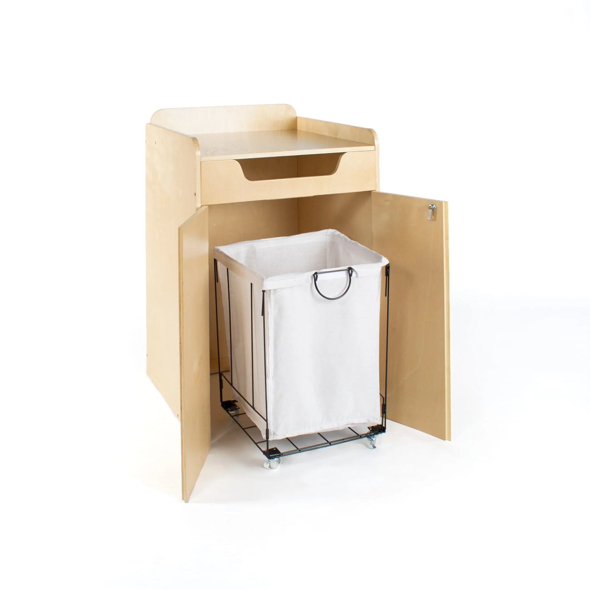 - Birch plywood Book Drop with locking doors and interior canvas bin