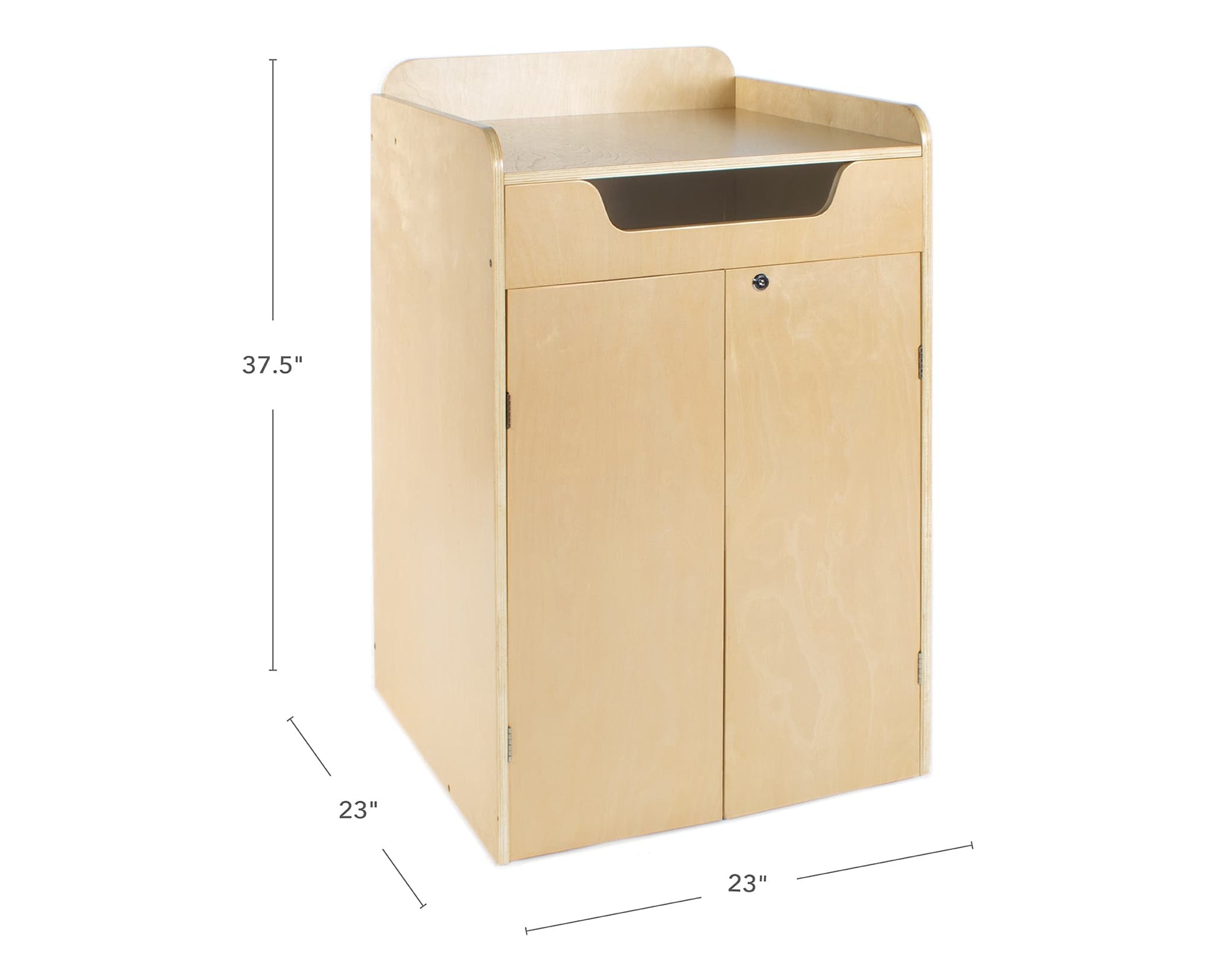 - Assembled Dimensions: 23"W x 23"D x 37.5"H. Bin measures 20" H.