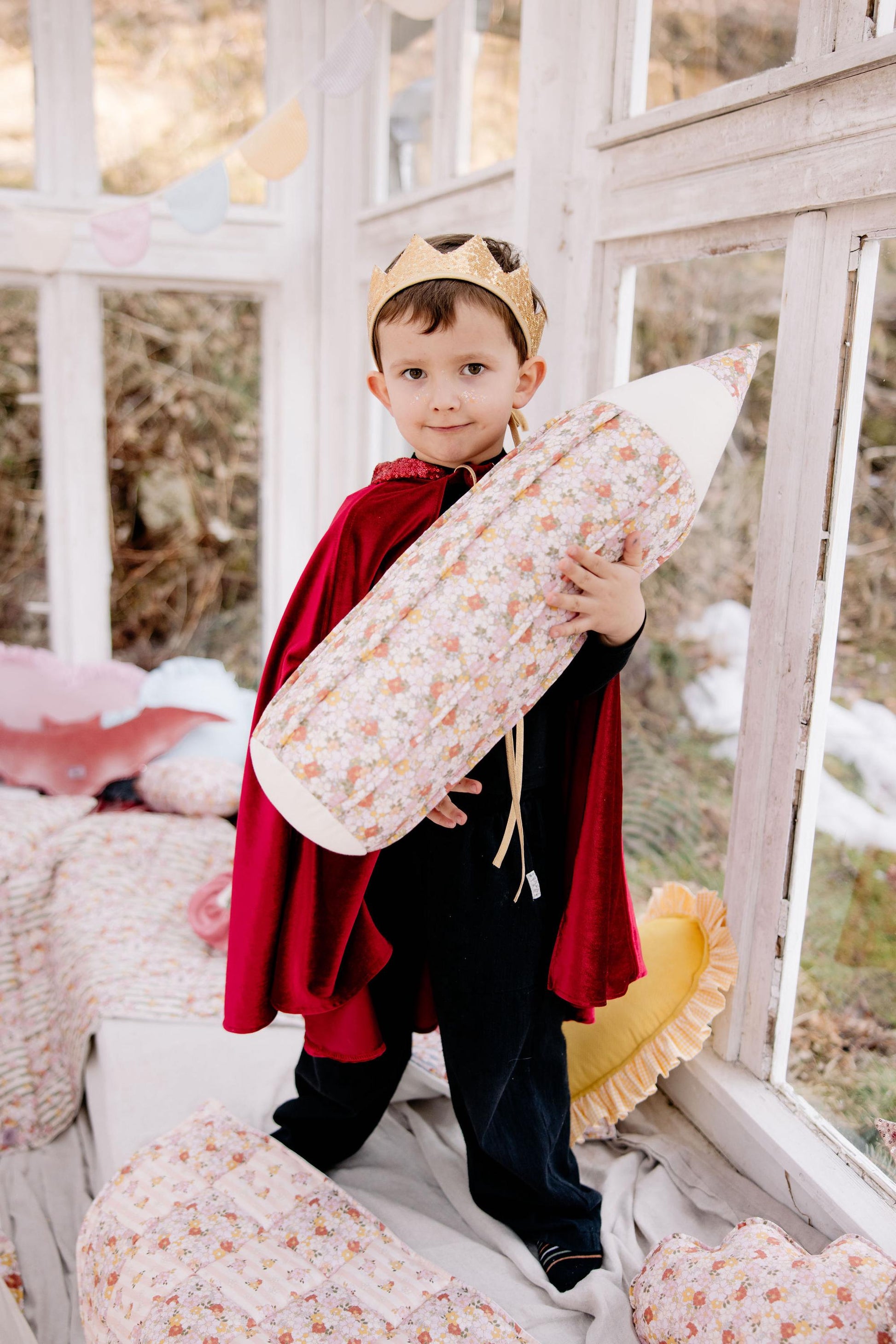 Add a playful touch to your child's room with this adorable crayon-shaped pillow, featuring a charming floral pattern in warm pastel tones. High-quality satin cotton makes it soft and perfect for cuddling or decorating. Ideal for nurseries, reading nooks or as a back-to-school gift.