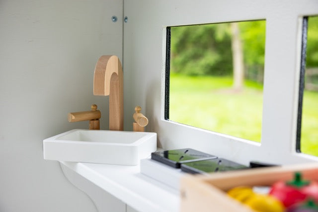 Enhancing the play experience, the Londyn Swing Set includes a built-in kitchen, complete with beautiful wooden play food, stove, sink and faucet. Little chefs can cook up countless culinary creations, engaging in role-play and developing their social skills.
