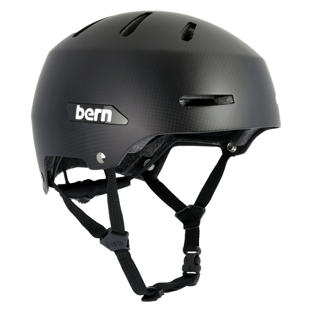 The Carbon Macon 2.0 is an evolution of BERN's old-school skate-inspired Macon helmet.This full Carbon Fiber design features our patented stealth slider, ultralight Ribtech EPS construction & DVRT protection padding. Extreme durability in a low profile, comfortable, ultra lightweight package.