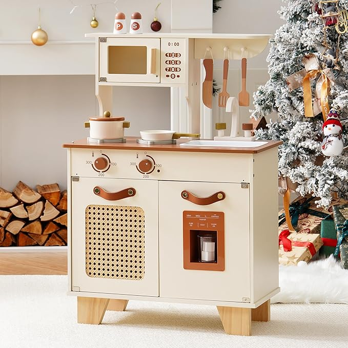 From a realistic ice maker that dispenses simulated ice cubes to a bakery stove with clickable knobs, and a sink for bubbly pretend cleanup, this kitchen is a gateway to endless imaginative adventures!