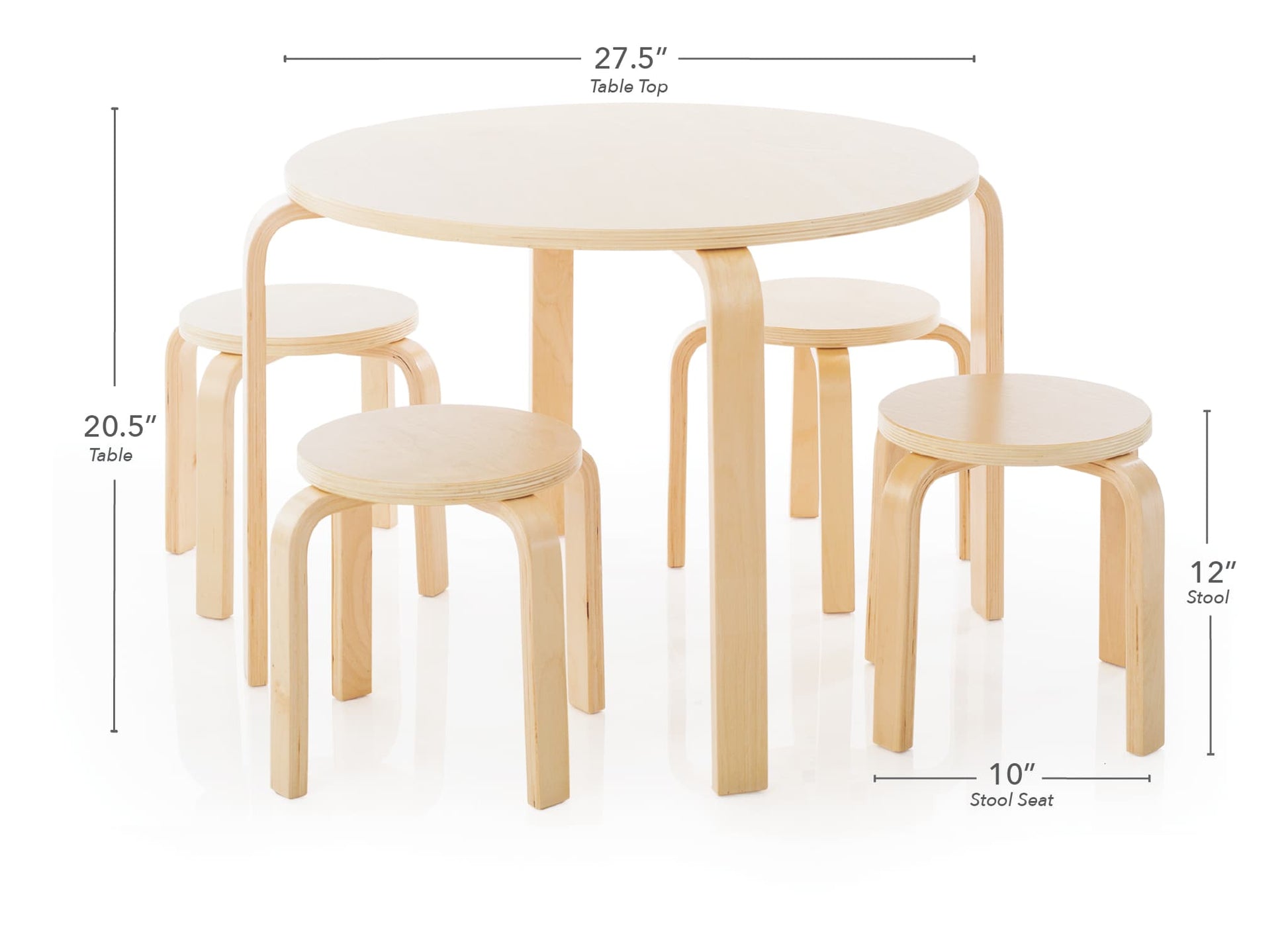 Young children can create art, have a tea party, write, read or play using the large, flat worksurface of the Nordic Table and Chair Set. The modern design and classic styling of this toddler table and chair set blend seamlessly with any child's playroom or bedroom décor. Conveniently stack the stools together and store under the table to save space and keep children's play areas organized and tidy.