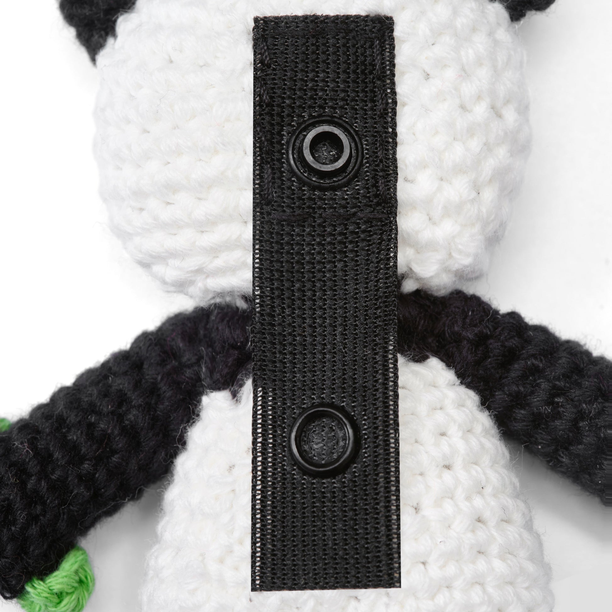 Meet our gentle crochet friend, Panda, who is never without a bamboo snack in hand! Hand-knitted with premium 100% cotton yarn, this Pocket Pal meets or exceeds all US safety standards. With a snap button on its back, it easily attaches to any Our Little Treasures apparel, making it the perfect companion for all your little one's adventures.