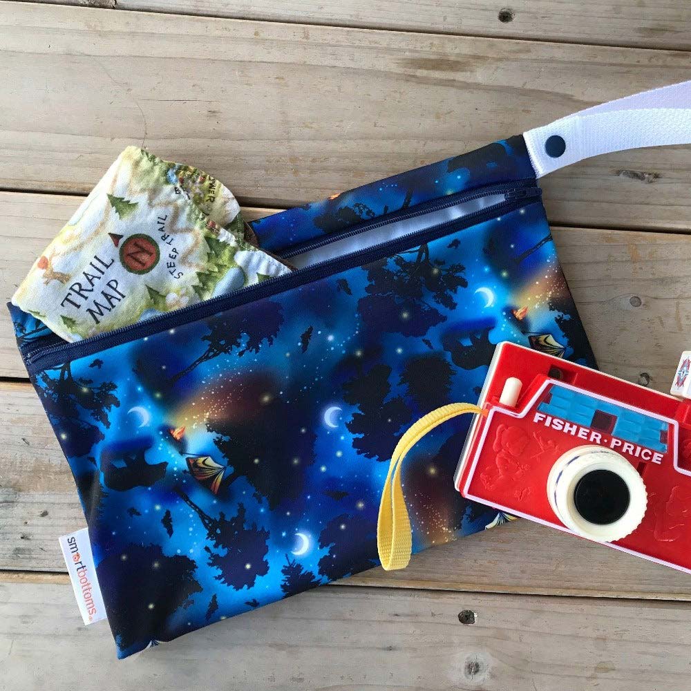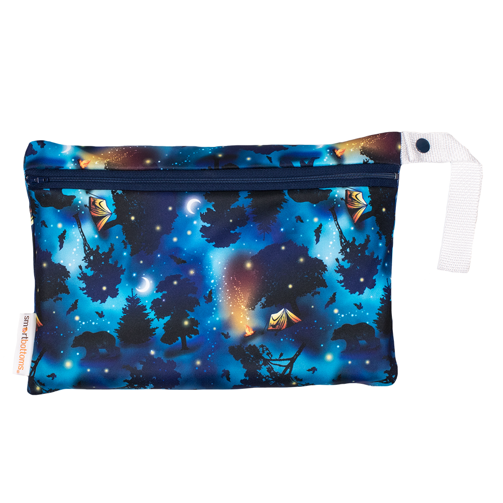 Smart Bottoms' Small Wet Bag holds approximately 2 All-In-One (AIO) cloth diapers and is the perfect size for a quick trip out or to hold an extra change of clothes or toys for baby.