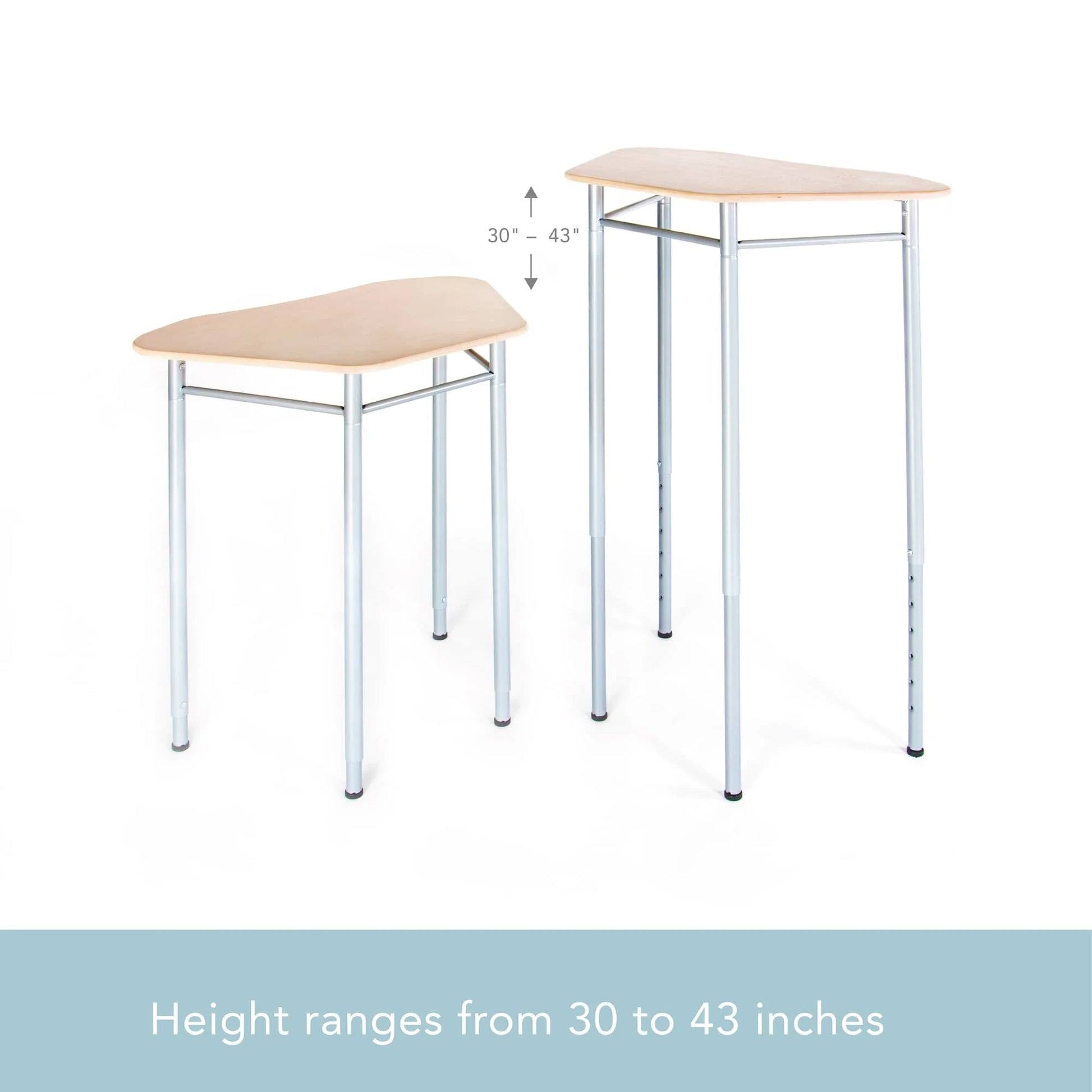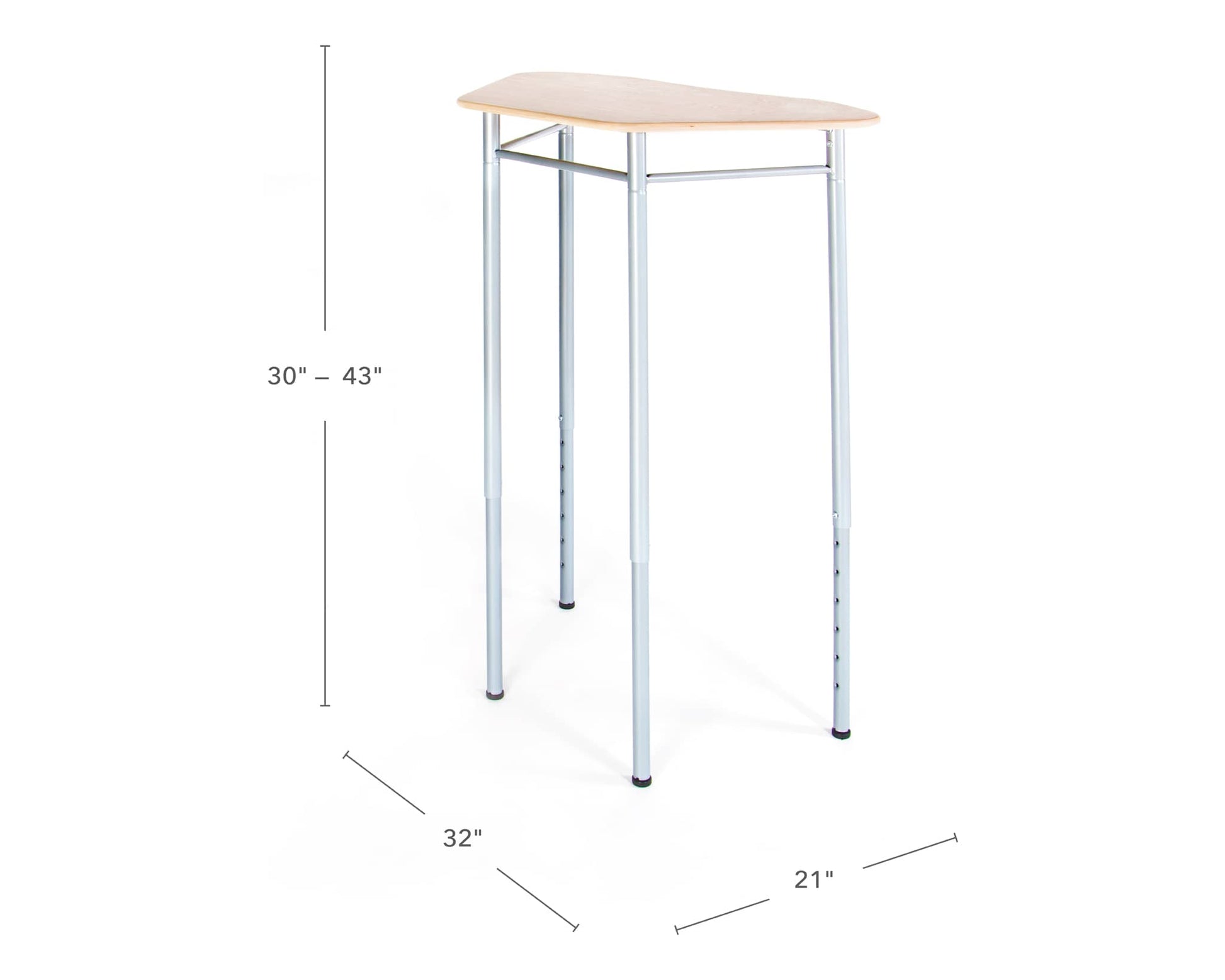 Modular Standing Desk features adjustable height that varies from 30-43 inches high. Desk offers a perfect learning environment required for student collaboration and classroom flexibility. Durable standing desk features a smooth-sanded birch plywood tabletop and a powder coated steel frame. Assembly required. Overall measurements: 32''W X 21''D X 30''- 43''H.