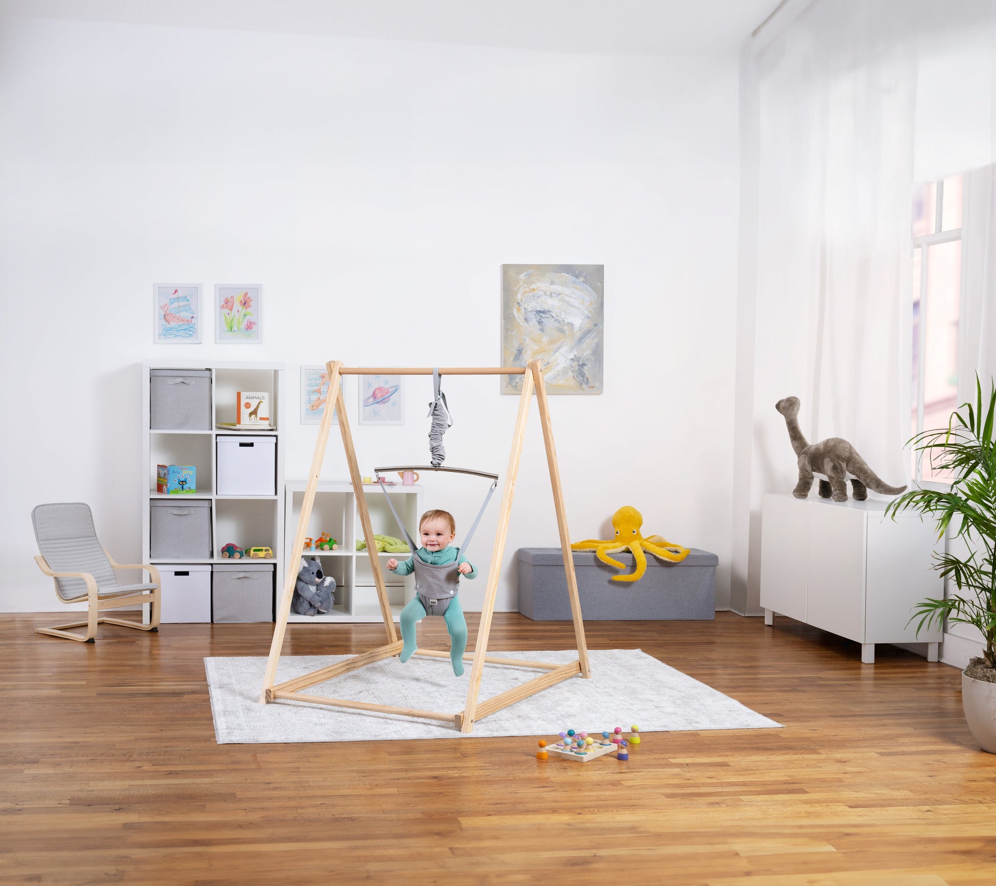 With its easy fold-down design and adjustable harness, it adapts as your baby grows. It mimics a gentle bounce powered by your little one, perfect for sensory stimulation and relaxation, all without batteries or plugs.